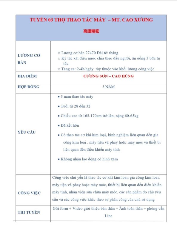 Công ty Cổ phần Quốc tế Lena Group Thông báo tuyển sinh Chương Trình Xuất Khẩu Lao Động đi Nước ngoài năm 2024. Chi Phí Xuất Khẩu Lao Động chuẩn theo quy định từ Bộ LĐTBXH (Cam kết không phát sinh). Cam kết hỗ trợ việc làm với thu nhập ổn định. Hỗ trợ làm đầy đủ giấy tờ thủ tục.